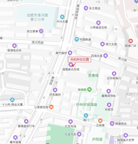 | 1.标的坐落位置:合肥市蒙城路108号城隍庙二期B区117号。 2.标的权属情况:有房产证和土地证。租赁标的无权属纠纷,委托方将提供该处标的的权属证明和租赁证明,方便承租人办理相关证照。 |