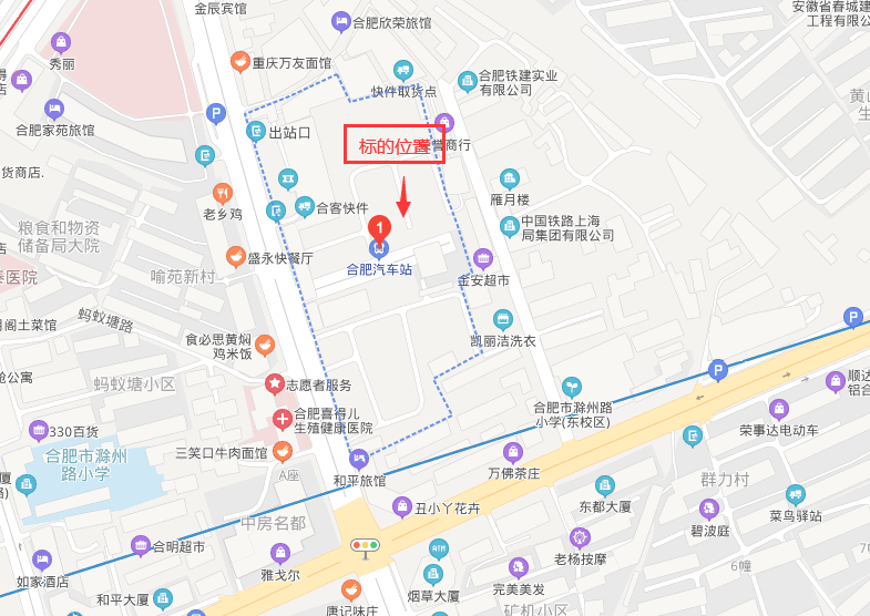| 1.标的坐落位置:合肥市瑶海区明光路合肥汽车站。 2.标的权属情况:标的房屋无房产证,有土地证(为大证未分割)。标的面积为委托方估算面积,仅供参考。租赁标的无权属纠纷,委托方将提供该处标的的权属证明和租赁证明,方便承租人办理相关证照。 3.标的房屋以现状出租。 |